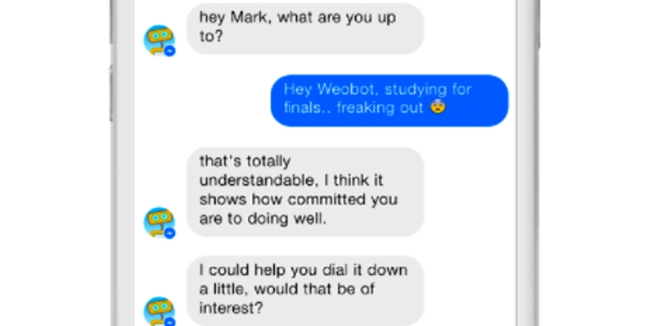 Woebot je počeo "raditi" u junu ove godine. Dizajniran je da oponaša ljudsku konverzaciju i primarno da daje savjete, nudi suosjećanje i pomaže u podizanju samopouzdanja korisnika. Dostupan je korisnicima putem Facebook Messengera, uz besplatan period od dvije sedmice. Nakon toga, konverzacija se naplaćuje.